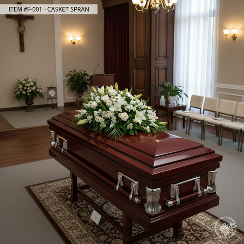Arreglo Fúnebre Cubre Caja Con Rosas Blancas y Lirios
